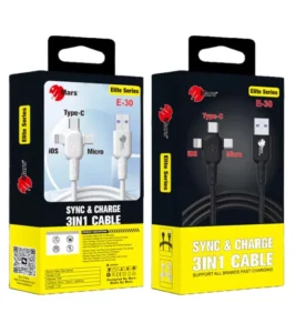 Mars Elite Series E-30 (3 in 1) Fat Super Fast Charging Cable Micro, Type-C & IPhone