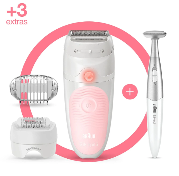 The new Silk-épil 5 comes with a massage cap for a more comfortable and gentle hair removal experience.