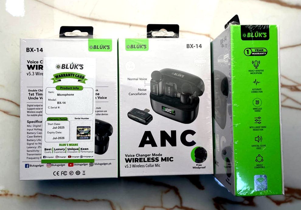 With BLUK’S BX-14, you don’t just record — you create. Enjoy Noise Reduction, Reverb, and Voice Changer Modes in one powerful wireless mic