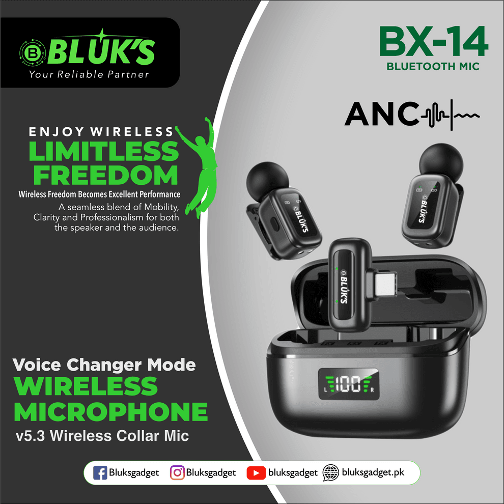 The BX-14 Wireless Collar Mic brings professional recording and entertainment together. With 3 voice changer modes, noise reduction, and reverb effects, it’s ideal for content creators, streamers, and professionals who want both clarity and creativity in their recordings.