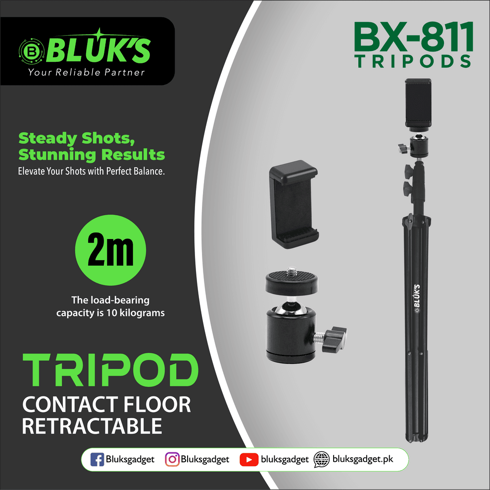 At Bluk’s Gadget, we specialize in durable and innovative accessories designed for creators, photographers, and professionals. The BX-811 Tripod Stand combines strength, flexibility, and portability to make every shoot effortless.