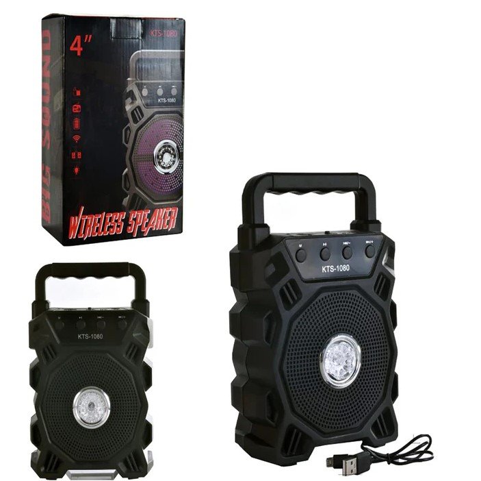 The KBOARD ITS-1080 Wireless Speaker delivers a complete audio experience with a 4-inch woofer for deep bass and clear sound. Designed for versatility, it includes a mic jam feature for karaoke, LED lighting for a stylish vibe, and a built-in radio for endless entertainment. Enjoy multiple connectivity options with a memory card slot, USB reader, and wireless Bluetooth compatibility. Ideal for parties, gatherings, and personal use, this powerful speaker combines style with performance. Available now at ShopTech