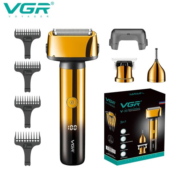 VGR V-367 3 IN 1 Beard Shaver LED Display Hair Trimmer